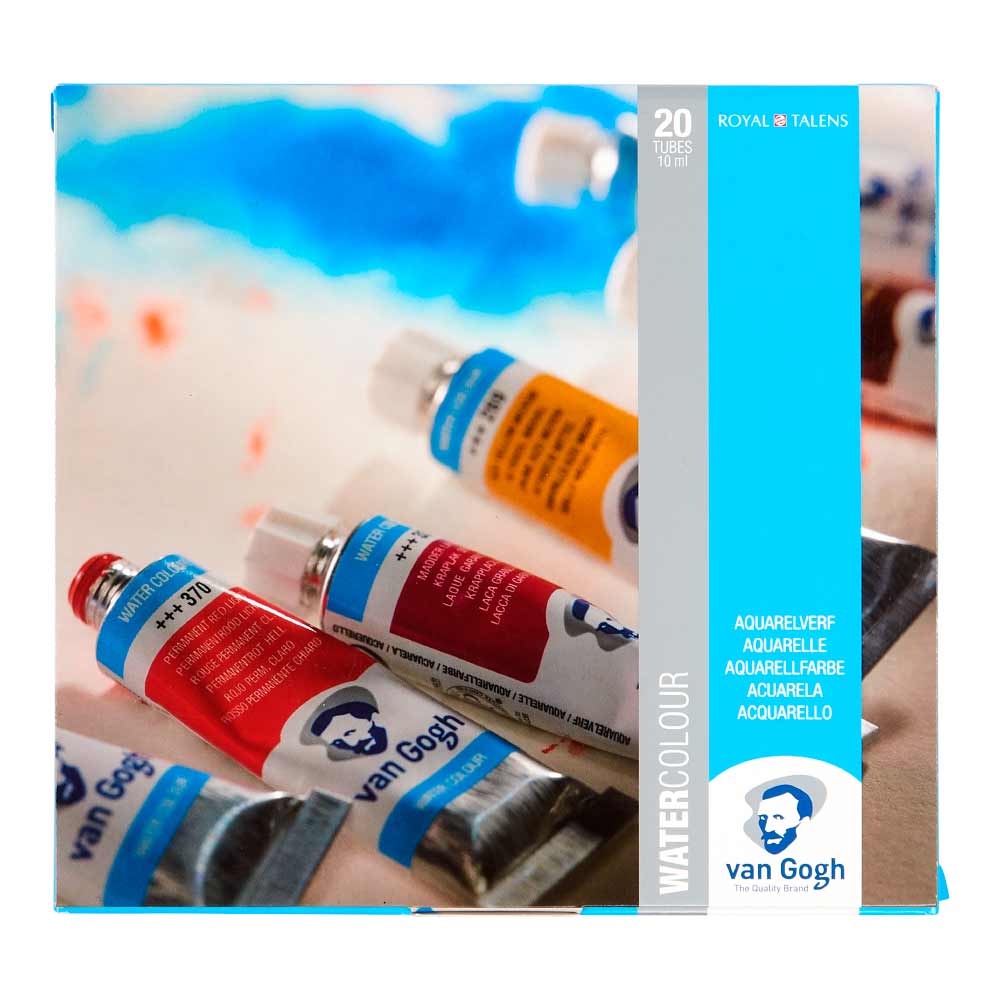 Estojo completo de aquarela Royal Talens Van Gogh com 20 tubos de 10ml cores vibrantes, alta resistência à luz e desempenho profissional. Ideal para artistas profissionais e estudantes.