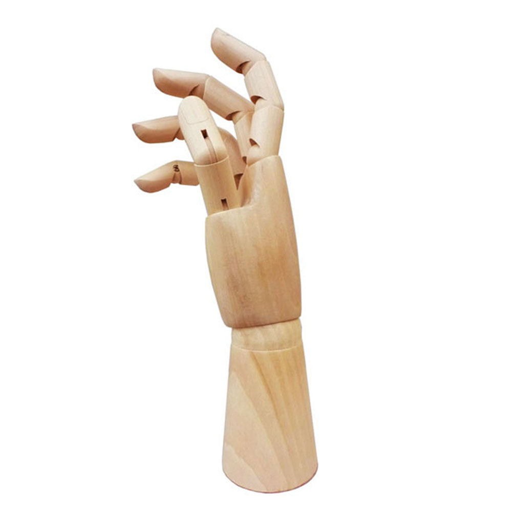 Mão Madeira Articulada Direita 30cm para idealizar a estrutura do corpo humano e seus movimentos. Manequim para desenho e estudos básicos da figura humana em posições diversas.