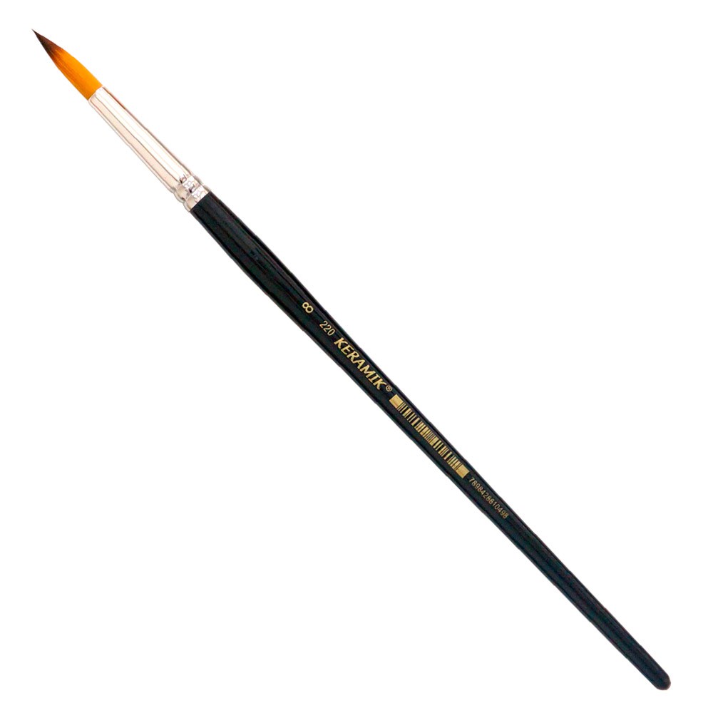 Pincel Keramik 220 redondo, pelo sintético e cabo curto de madeira. O Pincel 220 cobre grande área do seu trabalho, e faz traços finos e detalhados, retém bastante água e pigmentos. Indicado para técnicas de aquarela e uso em geral com tinta aquabase.