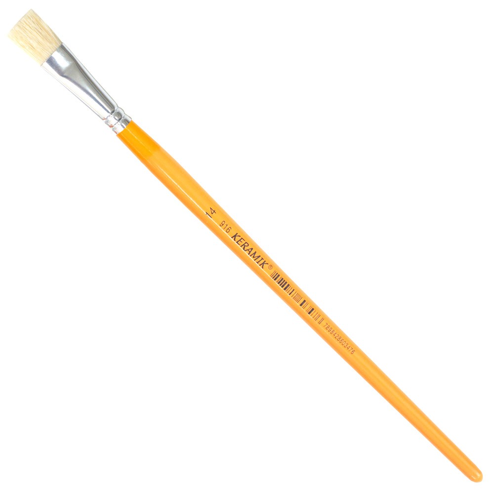Pincel Keramik 916 Chato, cerdas naturais e cabo longo amarelo. As cerdas são altamente resistentes a solventes e atrito.