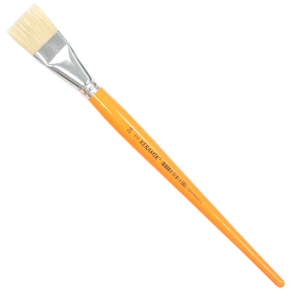 Pincel Keramik 916 Chato, cerdas naturais e cabo longo amarelo. As cerdas altamente resistentes a solventes e atrito.